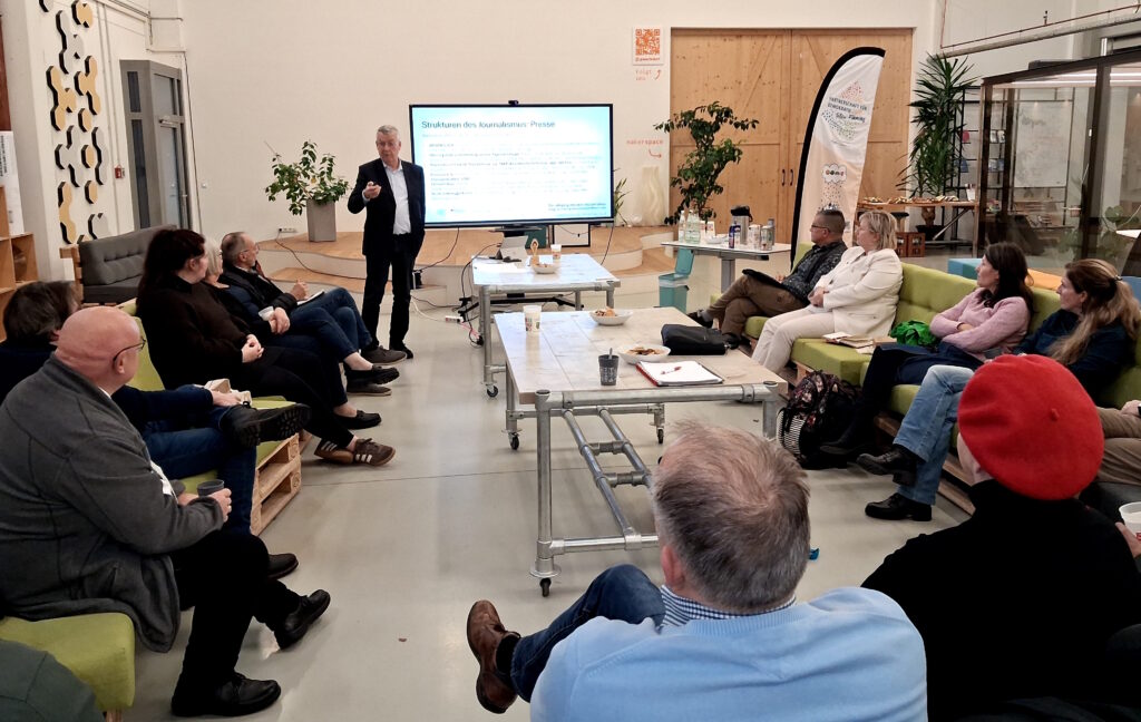 Nicht immer ist das Verhältnis von Verwaltung und Medien ungetrübt. Und da ist es förderlich, Journalismus als Bindeglied zur Öffentlichkeit einmal genauer zu betrachten. Die Partnerschaft für Demokratie Teltow-Fläming hatte Personen aus kommunalen Verwaltungen am 20. November in den Gewerbehof der Stadt Luckenwalde eingeladen – zu einem Austausch über Wege und Hürden im Umgang mit dem Journalismus. Referent Wolfgang Streitbörger, promovierter Journalismuswissenschaftler und Hochschullehrer sowie Inhaber einer PR-Agentur mit langjähriger Medienpraxis, führte durch die Veranstaltung und bot zunächst eine Einführung in das Aufgabenfeld des Journalismus.