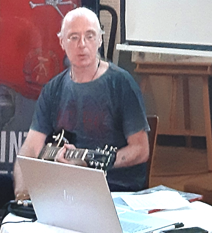 Auf einer Leinwand hinter den Vortragenden begleiteten einige des mehrere hundert Zeichnungen umfassenden Comic die Lesung, die zuweilen der Illustrator Dirk Mecklenbeck mit Gitarrenklängen untermalte. Die drei Referenten gaben im Anschluss an die von der Partnerschaft für Demokratie geförderten Lesungen im Zeitzeugengespräch Auskunft und Einblicke in eine Zeit, die auch vielen Besuchern des Nachmittags noch in Erinnerung gewesen sein dürfte.